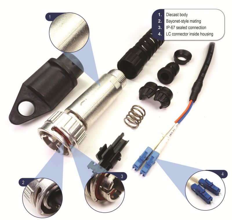 安費(fèi)諾光學(xué)j型連接器外殼設(shè)計(jì)用于與室外安裝的電子設(shè)備進(jìn)行光學(xué)連接。使用“直接連接”的拓?fù)浣Y(jié)構(gòu),J-Connector可以接受SFP或SFP+可插拔收發(fā)器,有效地將無源光學(xué)組件轉(zhuǎn)換為有源電氣接口。這種連接方法允許快速和容易更換光學(xué)元件,并允許重新配置升級。 現(xiàn)場可安裝版本可以安裝在現(xiàn)有的室外單工或雙工LC組件上,用于需要現(xiàn)場或本地組裝制造的應(yīng)用。j型連接器的光艙壁插座設(shè)計(jì)成可以接受任何符合MSA標(biāo)準(zhǔn)的SFP或SFP+收發(fā)器,提供IP67級的水和灰塵進(jìn)入防護(hù),以及對面板/保持架的接地,以改善電磁干擾屏蔽。