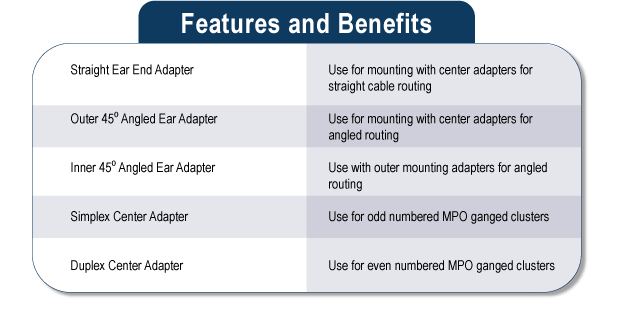 Amphenol的可堆疊適配器系統(tǒng)可與所有符合IEC 61754-20和TIA / EIA 604-10的行業(yè)標(biāo)準(zhǔn)LC連接器以及符合IEC 61754-7和TIA / EIA 604-5的行業(yè)標(biāo)準(zhǔn)MPO連接器系統(tǒng)一起使用,包括MTP®品牌的連接器。